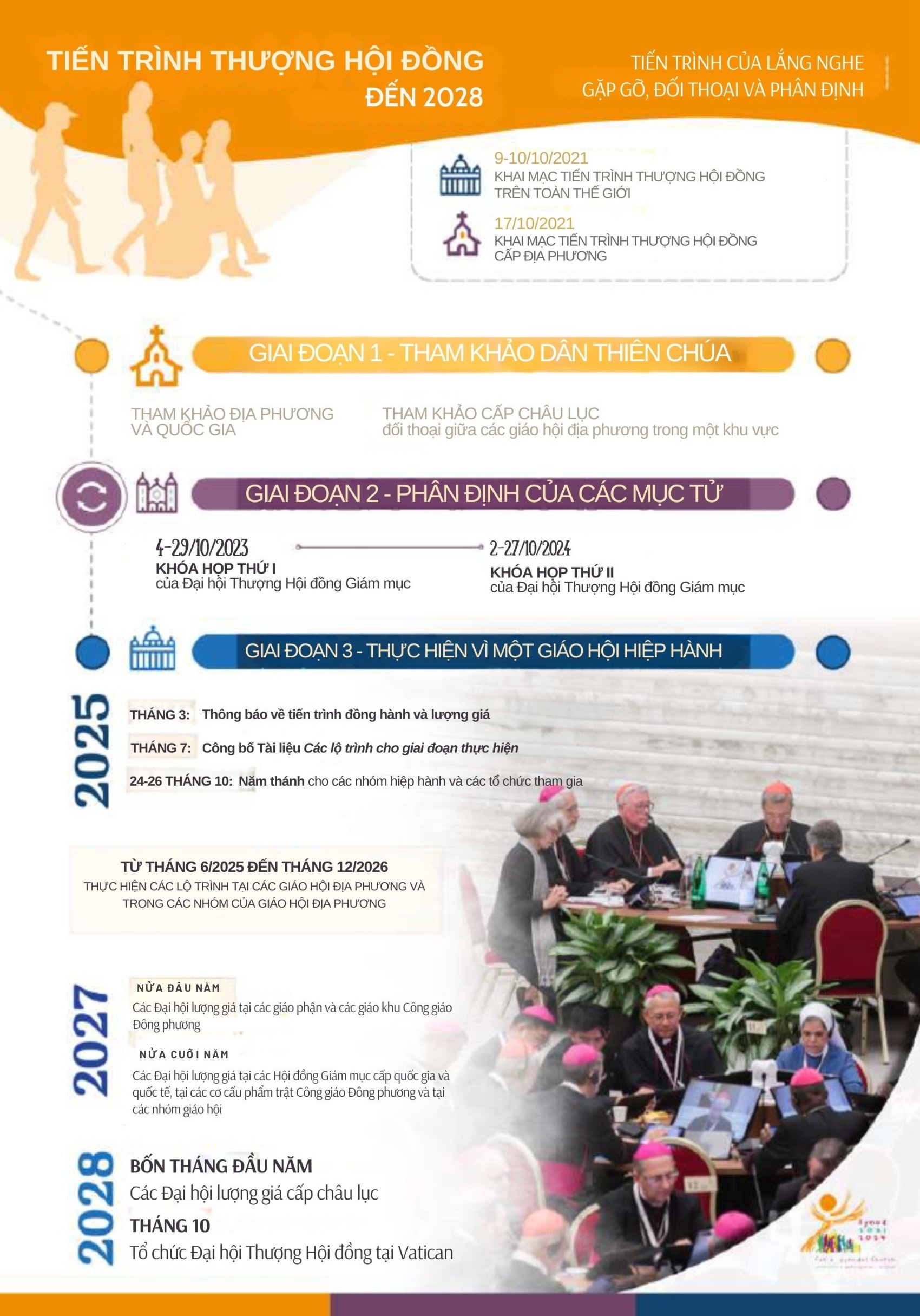 - Giai đoạn I năm 2027: các Đại hội lượng giá tại các giáo phận và các giáo khu Công giáo Đông phương;
