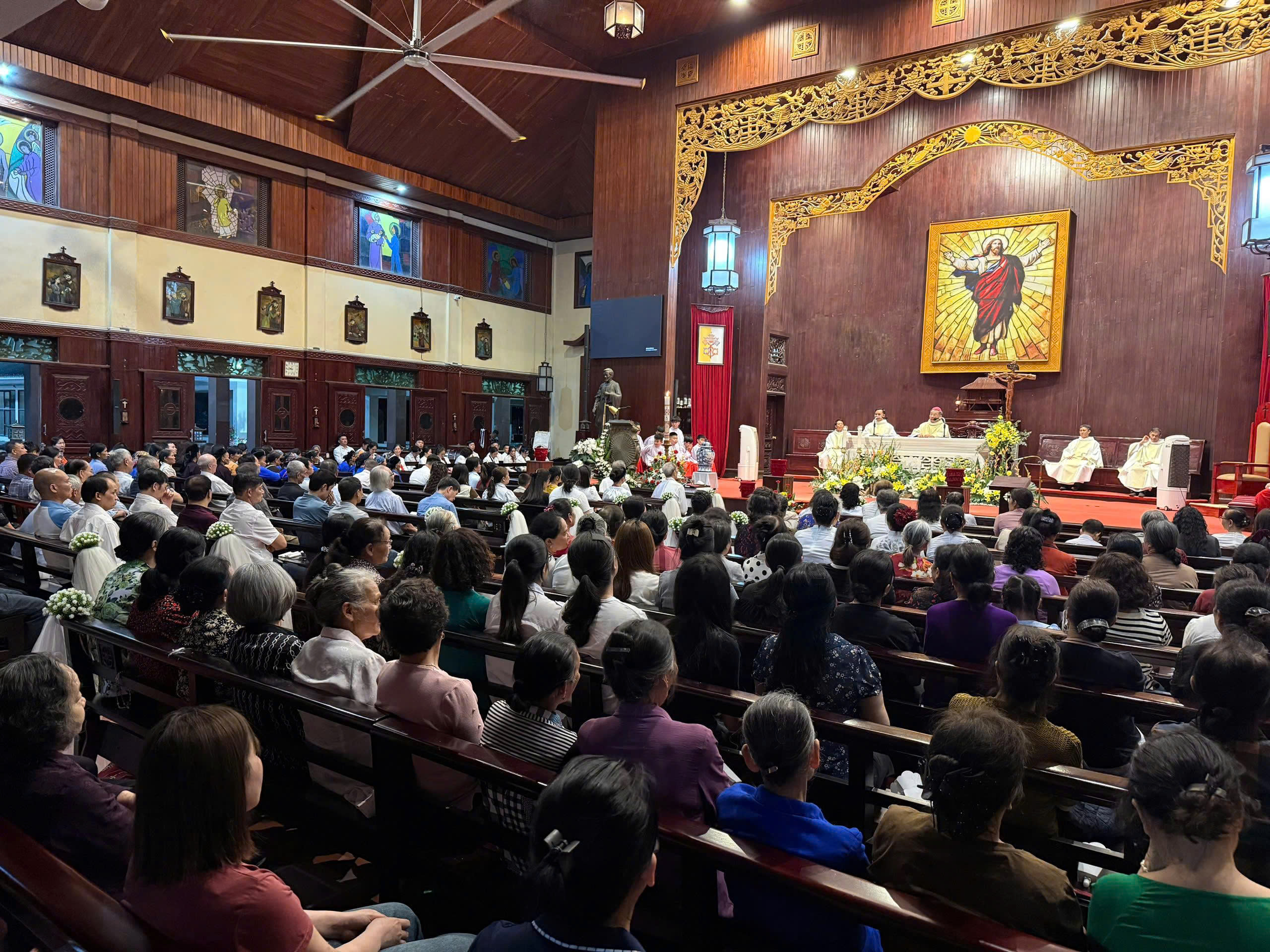 Cuối Thánh lễ, Đức cha Giuse đã gửi lời chúc mừng Phục sinh đến toàn thể gia đình Giáo phận, cách riêng cộng đoàn hiện diện trong Đêm cực thánh. Những quả trứng Phục sinh nhỏ bé được trao tay, như một dấu chỉ giản dị nhưng đầy ý nghĩa của sự sống mới và niềm hy vọng.