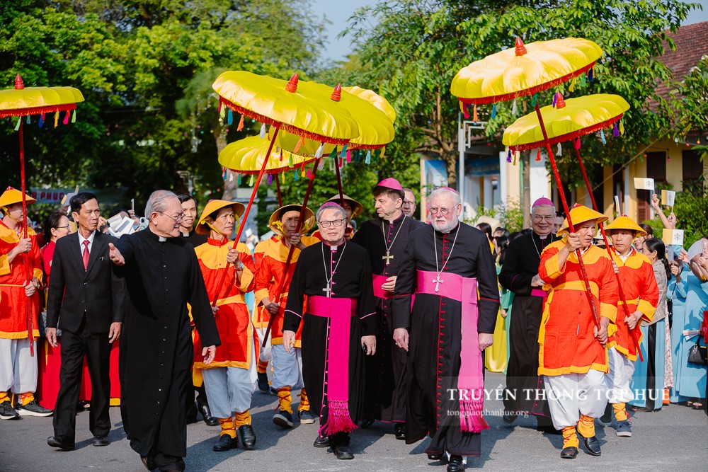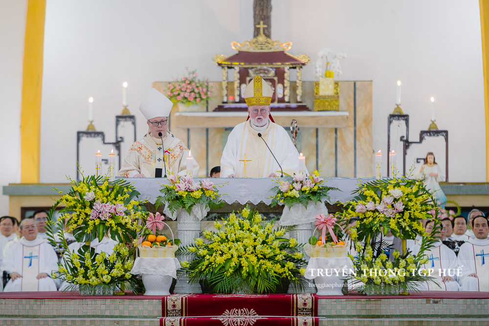 Cùng đồng tế với Đức TGM Bộ trưởng Ngoại giao Toà Thánh trong Thánh lễ đặc biệt này có Đức TGM Marek Zaleswki – Đại diện Tòa Thánh thường trú tại Việt Nam, Đức Cha Giuse Nguyễn Chí Linh – Tổng Giám mục TGP Huế, Đức Cha Phanxicô Xaviê Lê Văn Hồng – Nguyên Tổng Giám mục TGP Huế, Đức Cha Giuse Đặng Đức Ngân – Tổng Giám mục Phó TGP Huế, Đức Ông John David Putzer – Thư ký Bộ Ngoại giao Toà Thánh, Đức Ông Phanxicô Xaviê Cao Minh Dung, Đức Ông Antôn Dương Quỳnh – Tổng Đại diện, Đức Ông Giuse Nguyễn Văn Chánh – Đại diện Giám mục, Cha Giuse Đào Nguyên Vũ – Chánh văn phòng HĐGM Việt Nam cùng quý Cha trong và ngoài TGP.