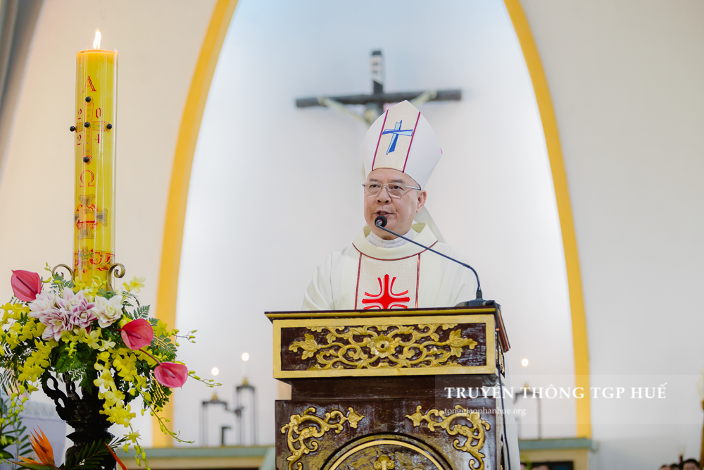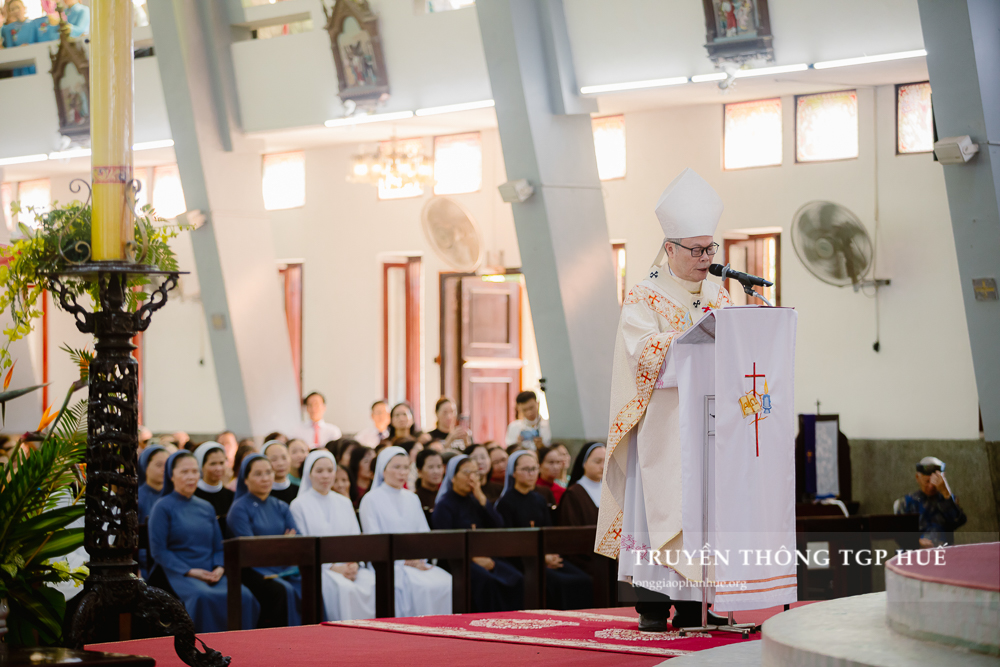 Trong bài giảng lễ, với các bài đọc của ngày thứ Sáu tuần 2 Phục Sinh, Đức TGM Phó Giuse diễn tả “cái nhìn bằng Trái tim nhân hậu và Lòng xót thương của Chúa Giêsu. Khi thấy dân chúng đông đảo đi theo Người, Người chạnh lòng thương trước nỗi khốn cùng về thể xác cũng như tinh thần của họ.” Với Thánh lễ đặc biệt hôm nay, ngài cũng nhấn mạnh đến niềm tin và hy vọng về chuyến viếng thăm Việt Nam của Đức Thánh Cha Phanxicô: “Dịp Đức TGM Paul Richard Gallagher – Bộ trưởng Ngoại giao Tòa Thánh thăm Việt Nam mang lại bao hy vọng cho mối tương quan tốt đẹp giữa Tòa Thánh Vatican và Chính phủ Việt Nam; niềm tin và hy vọng chuẩn bị cho một tương lai sẽ có chuyến viếng thăm của Đức Thánh Cha Phanxicô thăm Đất nước và Giáo hội Công giáo Việt Nam.”