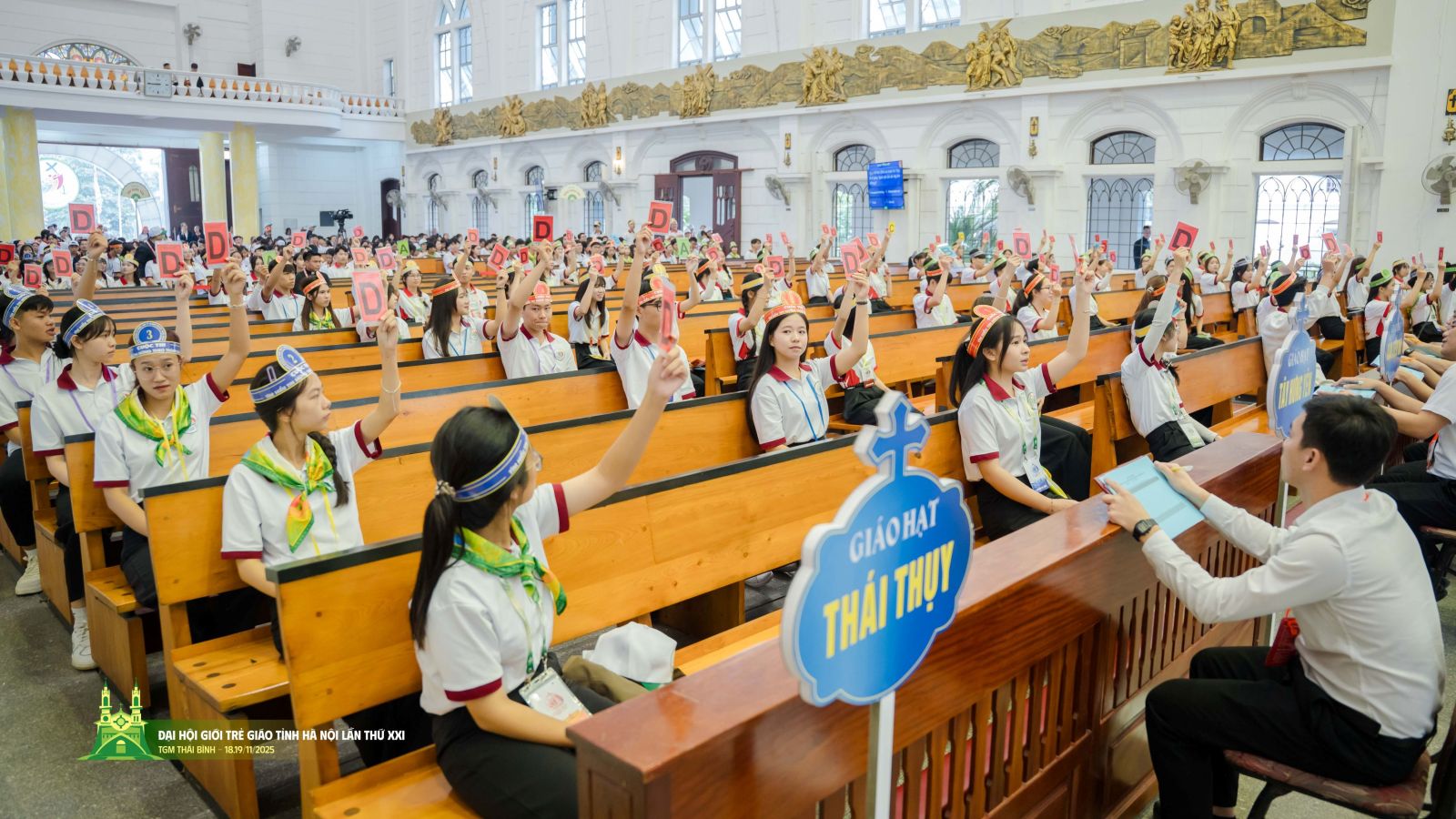 Ngay từ sáng sớm, giới trẻ từ khắp các giáo hạt trong giáo phận đã nô nức có mặt tại Tòa Giám mục Thái Bình, nơi diễn ra các hoạt động đón tiếp và chào mừng. Các bạn trẻ không chỉ mang theo sắc màu trang phục đặc trưng của đại hội mà còn mang theo niềm hân hoan và sự háo hức được gặp gỡ, giao lưu và cùng nhau chia sẻ niềm tin trong Chúa.