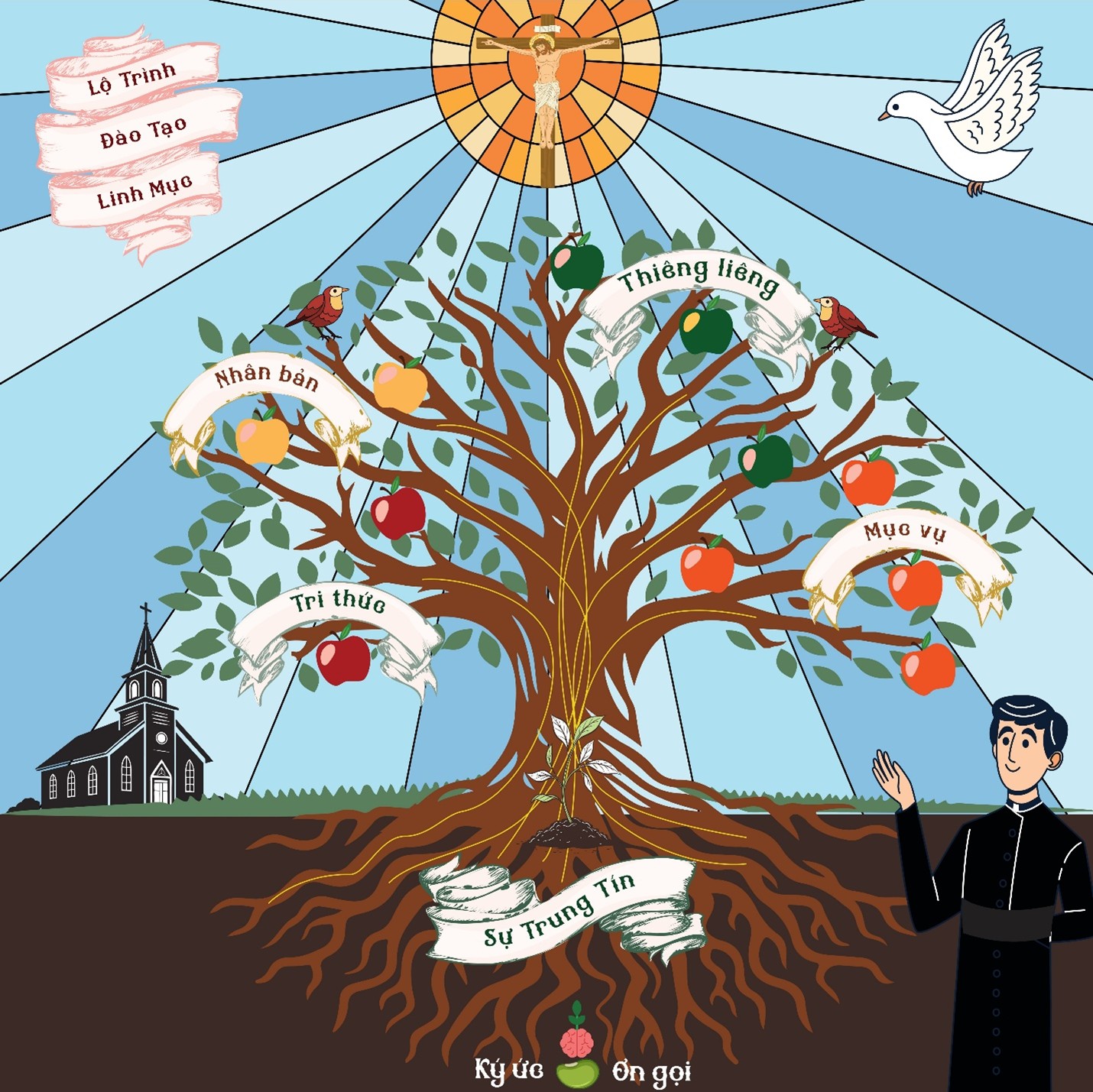 Lộ trình đào tạo linh mục trên có thể được trình bày theo hình ảnh một cây đại thụ như sau: Sự trung tín chính là bộ rễ tạo thành nhựa sống xuyên suốt từ hạt mầm (ký ức ơn gọi của chủng sinh) cho đến khi trưởng thành (linh mục). Từ bộ rễ vươn lên thân cây - tiến trình đào tạo, đóng vai trò là trục chính. Thân cây diễn tiến qua bốn chặng then chốt: ký ức ơn gọi được gìn giữ, phân định trong Thánh Thần, đào tạo ban đầu tích hợp, và cuối cùng là hội nhập căn tính linh mục. Thân cây cùng với dòng nhựa sống (sự trung tín) tạo thành một tiến trình liền mạch và là một thể thống nhất. Các cành cây, đặc biệt bốn cành chính, là bốn chiều kích đào tạo: nhân bản, thiêng liêng, tri thức và mục vụ. Khi nhựa sống (sự trung tín) dồi dào, lan tỏa khắp thân cây và các cành, cây sẽ lớn lên (linh mục), không ngừng phát triển (đào tạo thường xuyên) và trổ sinh hoa trái (sứ vụ) cho đời.[24]